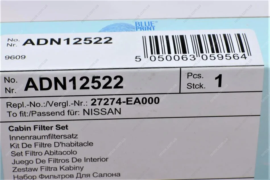 Фильтр салона Nissan Navara/Pathfinder 2.5dCi/3.0dCi/4.0 05- BLUE PRINT ADN12522 (999M1VR056, 27274EA000, 27274EA000S)