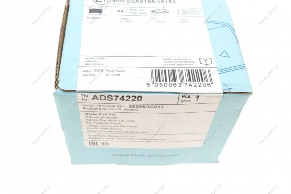 Колодки тормозные (передние) Subaru Impreza/Legacy 92-11 BLUE PRINT ADS74220 (26296AC000, 26296AC010, 26296AC011)