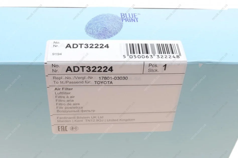 Фильтр воздушный Toyota BLUE PRINT ADT32224 (ay120ty003, 1780103030, 1780187104)