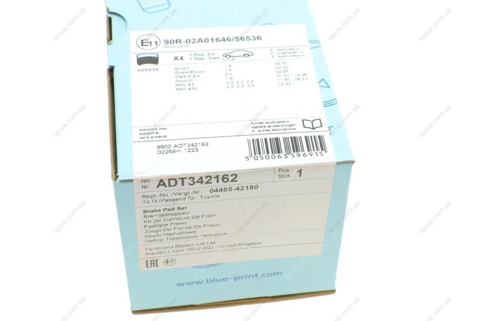 Колодки тормозные (передние) Toyota RAV4 2.0-3.5/Prius 1.8 05- BLUE PRINT ADT342162 (0446542150, 0446542140, 583022YA30)