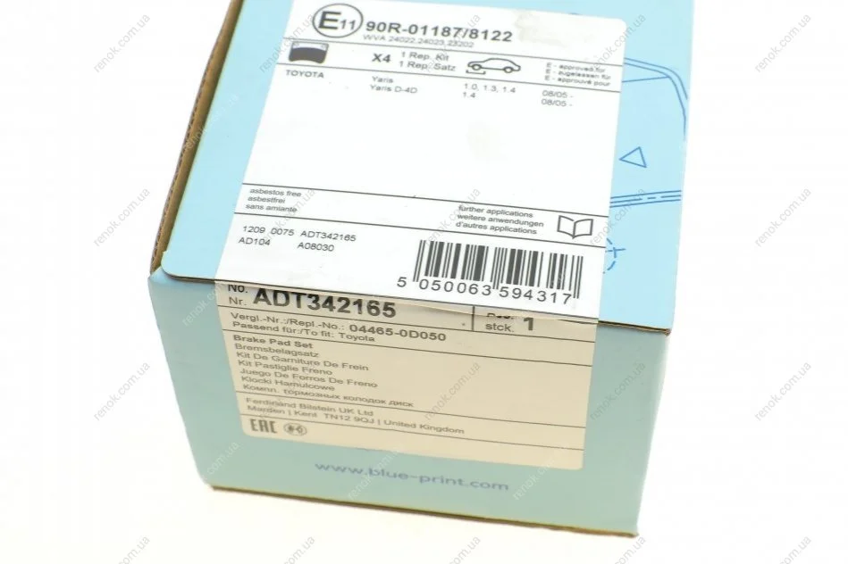 Колодки тормозные (передние) Toyota Yaris 05- BLUE PRINT ADT342165 (044650D050, 04465YZZD)