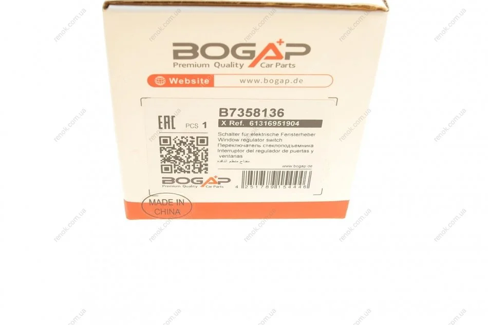 Кнопка стеклоподъемника (L) BMW 5 (E60) 03-10 M57/N43/N52/N53/N62 (блок) BOGAP B7358136