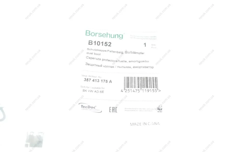 Пыльник амортизатора (переднего) Audi A1/A3/TT/Skoda Fabia/Octavia/Rapid/VW Golf/Passat 88- (OE VAG) Borsehung B10152 (357413175A)