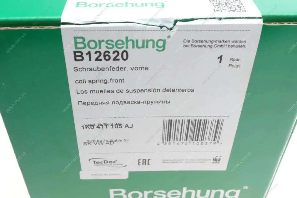 Пружина (передняя) Audi A3 1.2TSI 10-13/VW Golf 03-13 (OE VAG) Borsehung B12620 (1K0411105AJ, 1KD411105L)
