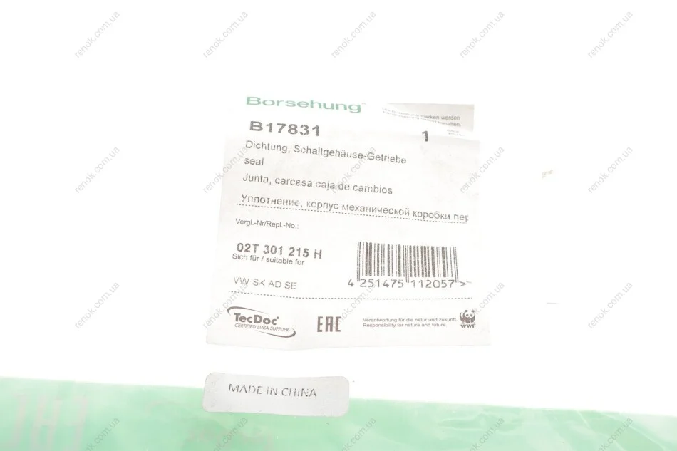 Прокладка крышки КПП VW Caddy III/IV 04-20 Borsehung B17831 (02T301215D, 02T301215F, 02T301215H)
