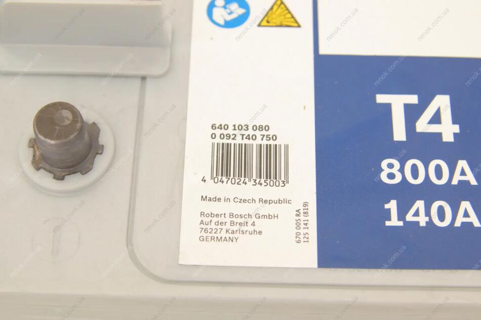 Аккумуляторная батарея 140Ah/800A (513x188x223/+L) BOSCH 0 092 T40 750 (7421293375, 7420393422, 0009821108)