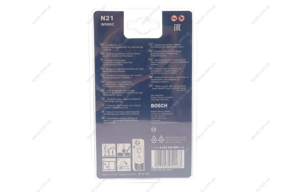 СВІЧКА WR9DC (0.8),4ШТ. 0 242 225 960 BOSCH 0242225960 (0021592503, 0021592603, 0021592903)