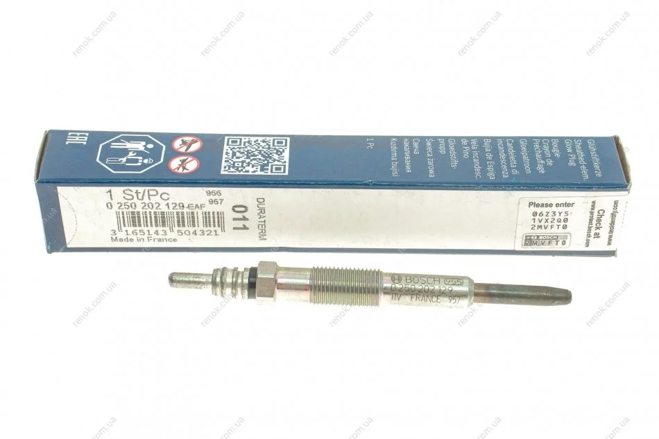 Свеча накаливания Renault Kangoo 1.9D (47kW F8Q) (под защелку) BOSCH 0250202129 (8200787721, 8200423227, 7700100635)