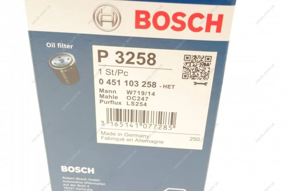 Фильтр масляный Jeep Cherokee (XJ) 2.5 TD 95-01 BOSCH 0451103258 (04778838, 05003558AA, 4778838)