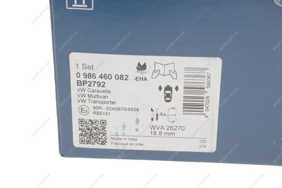 ДИСКОВІ КОЛОДКИ BOSCH 0 986 460 082