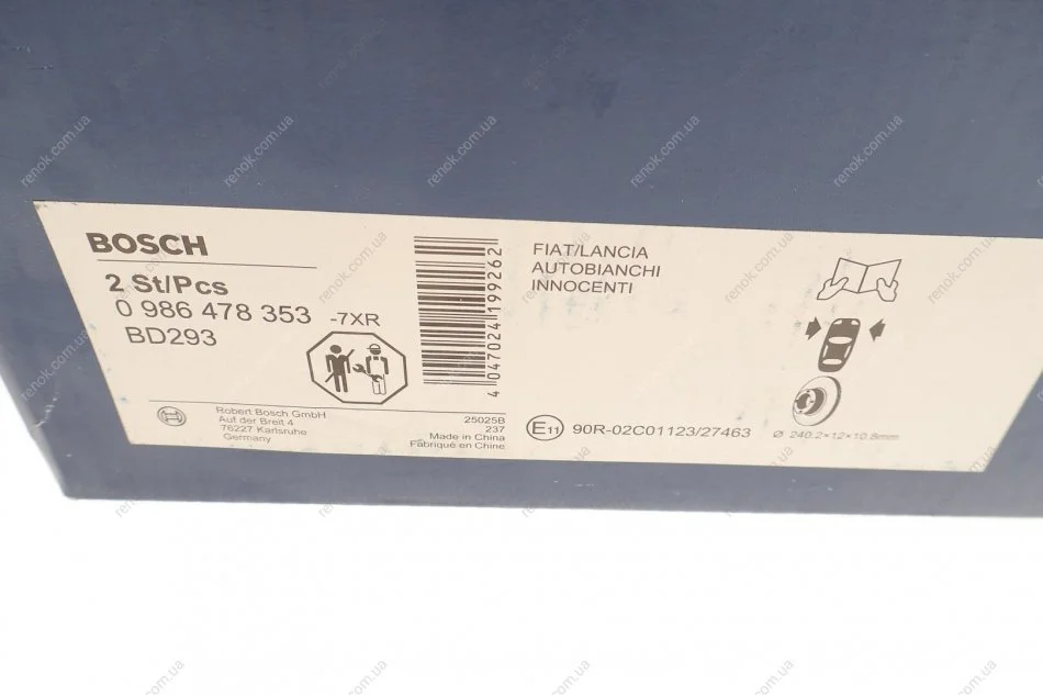 Диск тормозной Fiat Fiorino (146/147) 86-01/Panda 91-03 (240.2x12) BOSCH 0986478353