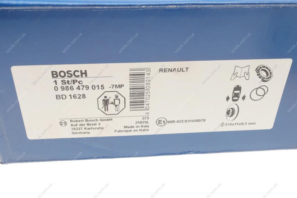 Диск тормозной (задний) Renault Kangoo 08-(274х11) (+ABS) (с подшипником) BOSCH 0 986 479 015 (432025057R, 432023939R, 4154200102)