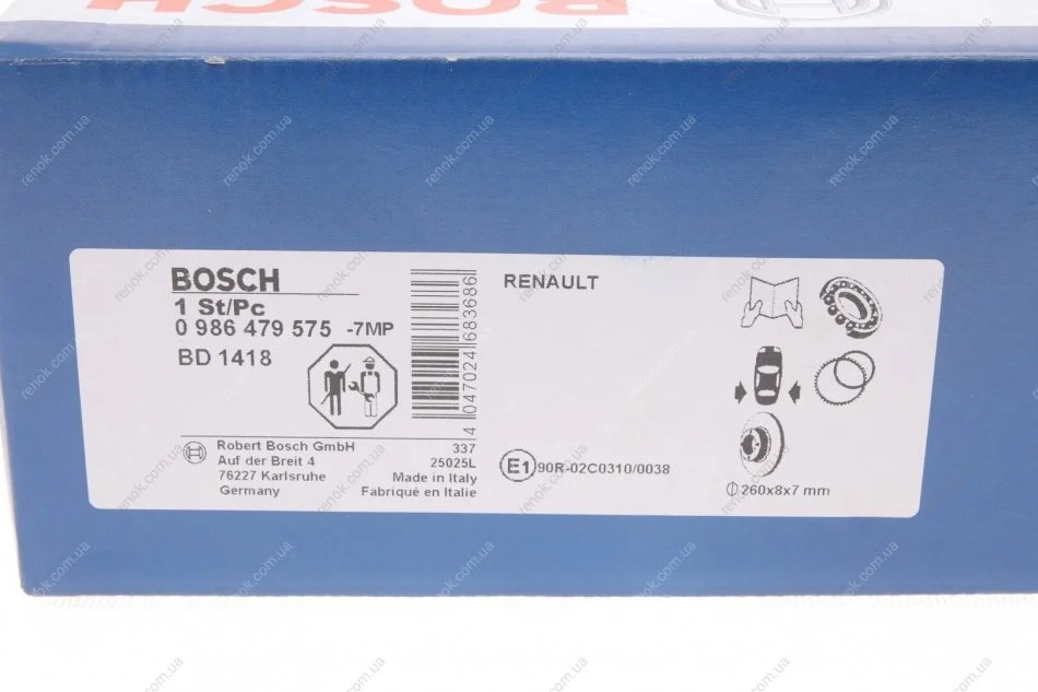 Диск тормозной (задний) Renault Megane III/Scenic III 08- (260x8) (+ABS) (с подшипником) BOSCH 0 986 479 575 (432001539R, 432000166R, 432007595R)