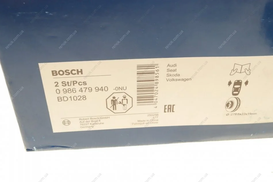Диск тормозной (передний) VW Caddy 04-(279.8x22) BOSCH 0986479940