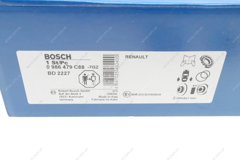 Диск тормозной (задний) Renault Megane 08-(260x8) (+ABS) (с подшипником) BOSCH 0 986 479 C88 (432007556R, 432006506R, 432000010R)
