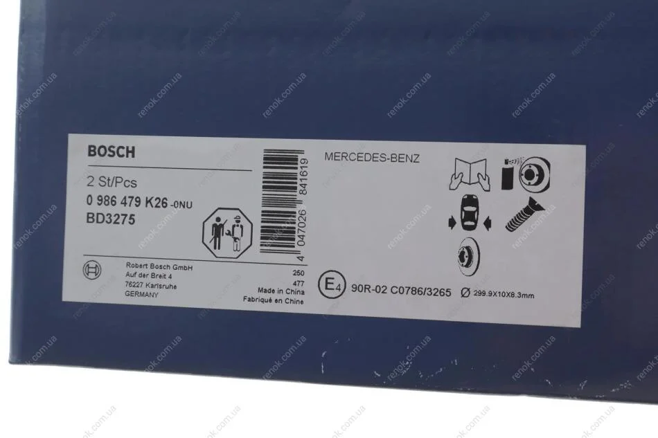 ГАЛЬМІВНИЙ ДИСК 0 986 479 K26 BOSCH 0986479K26 (0004231512, 2044230612, 2044230912)