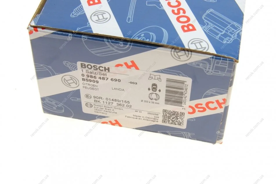 Колодки гальмівні барабанні BOSCH 0 986 487 690 (4241L7, 77362365)