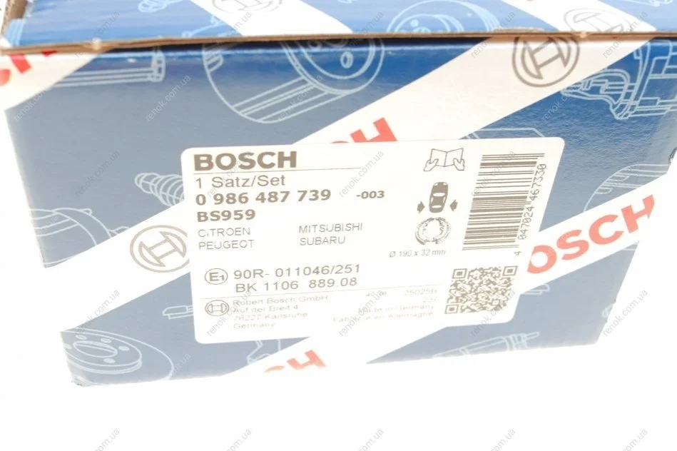 Комплект тормозных колодок Mitsubishi Grandis 04-/Outlander II/Subaru Forester 08- (190x31.6) BOSCH 0986487739 (4241N6, 26694YC000, 26694FG010)