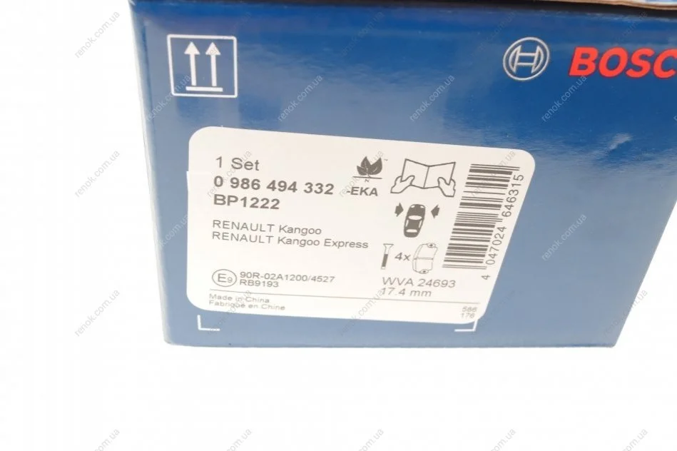 Комплект тормозных колодок (передних) Renault Kangoo 08- BOSCH 0986494332 (7701210174, 7701210110, 7701209864)
