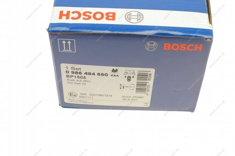 Колодки тормозные (передние) Audi A3/Q2/Q3/Seat/Skoda Octavia/Kodiaq/VW Golf/Passat B8 12-(+датчик) BOSCH 0986494660 (8V0698151, 5Q0698151D, 8V0698151G)
