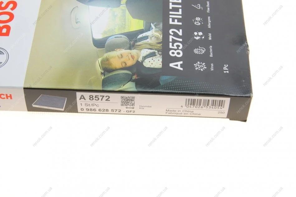 Фильтр салона Hyundai Accent III 05-10/i30 11-/Kia Ceed 12- (угольный/антиаллергенный/антибактериальный) BOSCH 0986628572