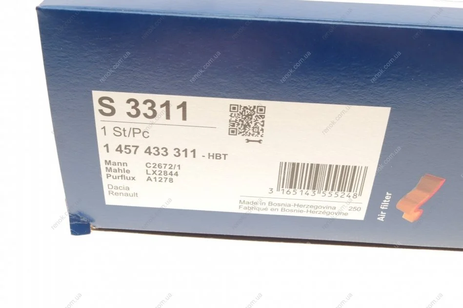 Фильтр воздушный Renault Kangoo 1.4 i 97-/Logan 1.6 i 04-/Symbol 1.4 i 08-12 BOSCH 1457433311 (7701070525, 7701069365, 7701047655)