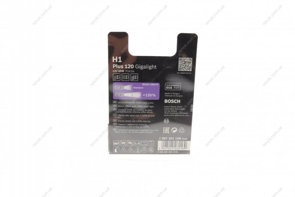 Автолампа H1 12V 55W P14.5s Gigalight +120% BOSCH 1 987 301 108 (n072601012270, 000000000268, 000000000375)