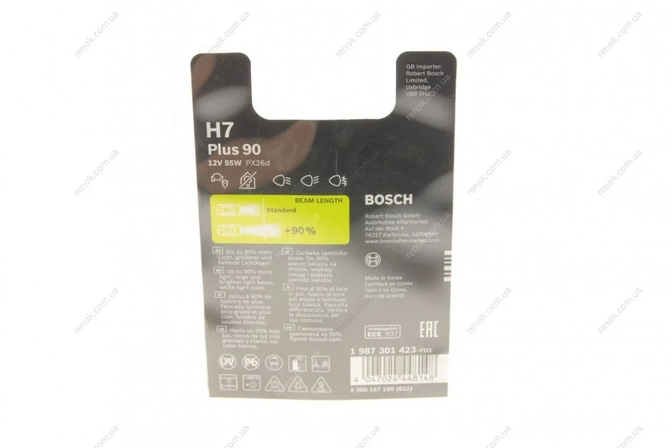 Автолампа H7 12V 55W PX26d +90% DuoBox (аналог 1 987 301 075) BOSCH 1987301423