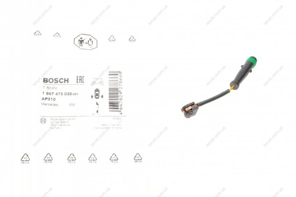Датчик износа тормозных колодок (задних) MB Sprinter/VW Crafter 06- (L=85mm) BOSCH 1987473038 (2E0906206B, 9065401317, A9065401317)