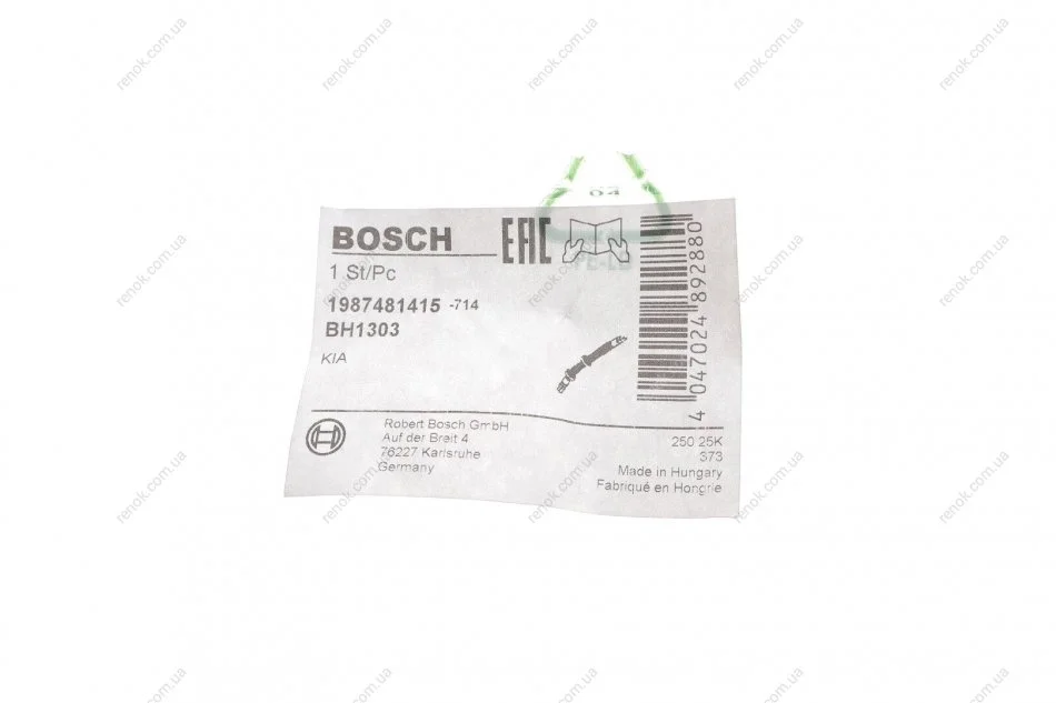 Шланг торм. зад. прав. HYUNDAI i30 07- BOSCH 1987481415 (587322L000, 587321H000, 587321M000)