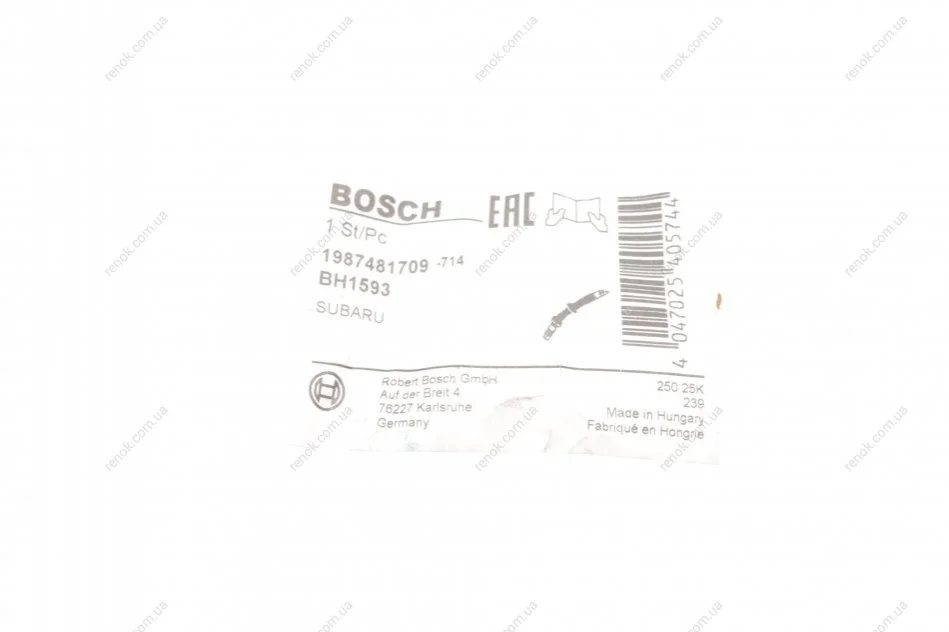 Шланг тормозной (передний) Subaru Forester 08-(R) BOSCH 1 987 481 709