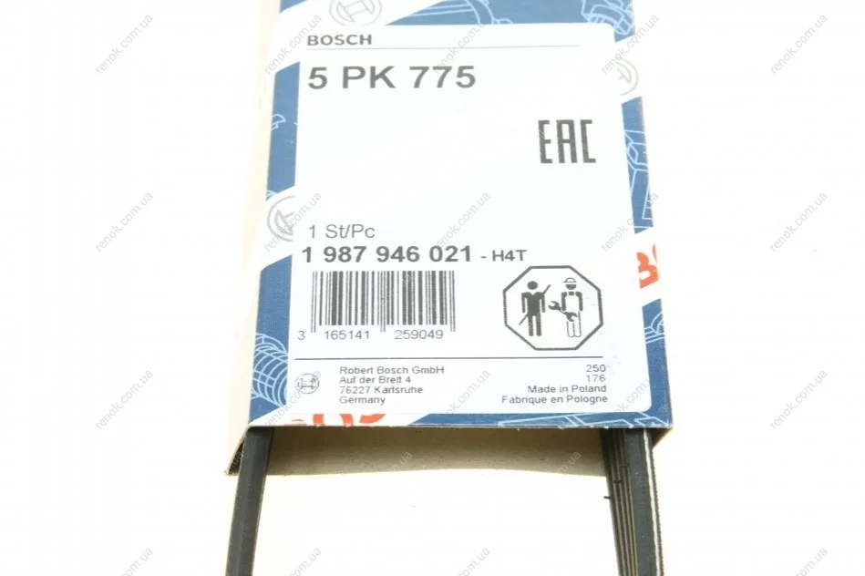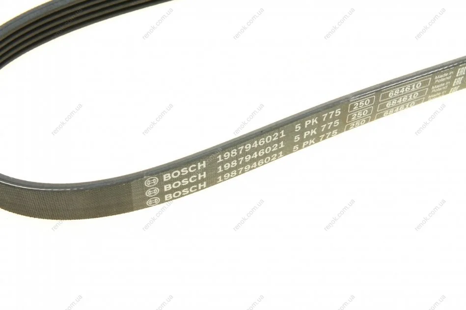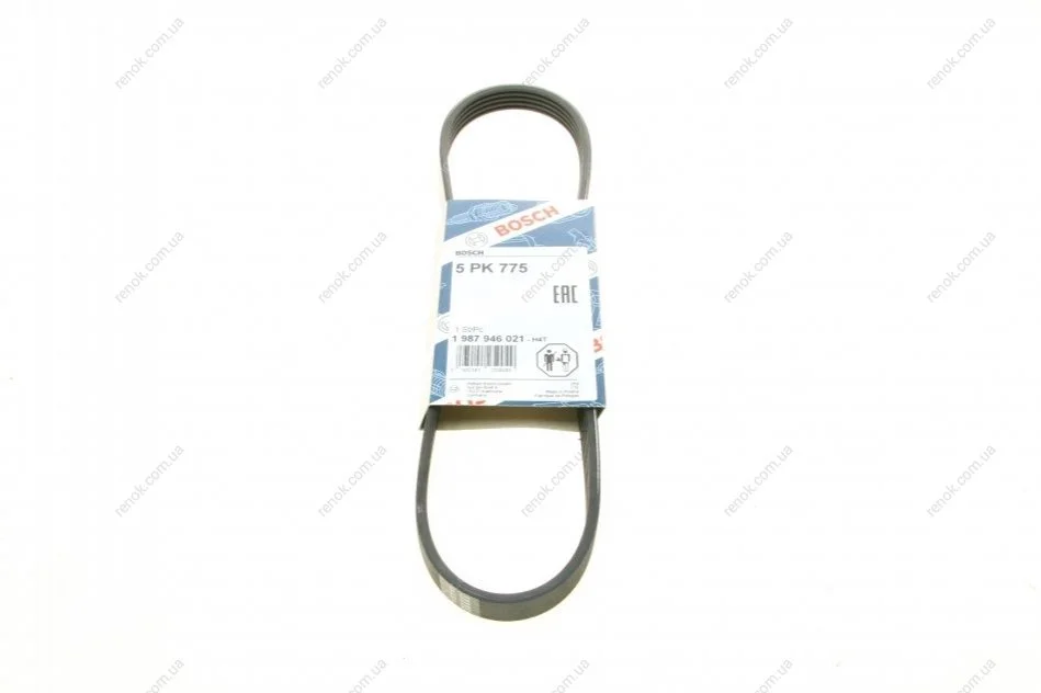 Ремень генератора Renault Laguna 3.0 93-01/Fiat Panda/Punto 0.9 12-/Peugeot 1.5D 94-04 (5PK755) BOSCH 1987946021 (7700861465, 96273681, 96173680)