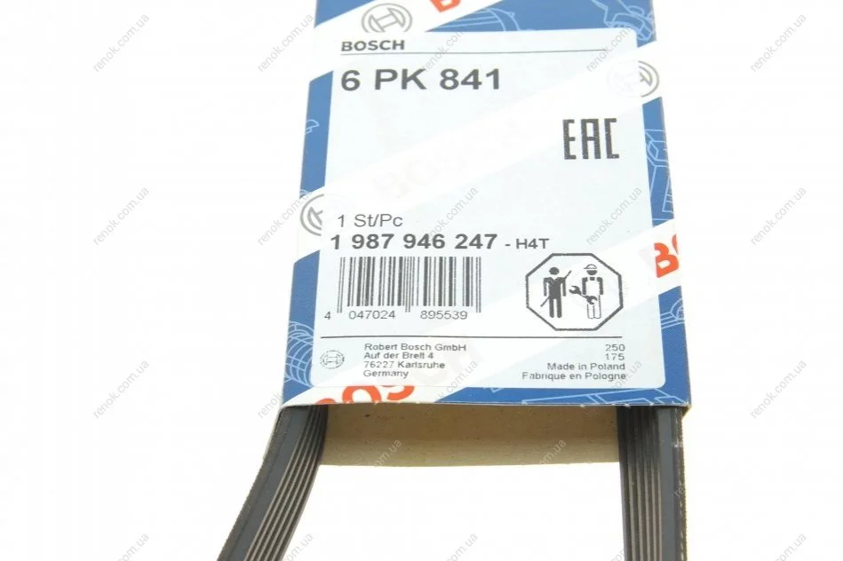 Ремень генератора Opel Movano 2.8DTI 98-01/VW Crafter 30-35 2.0TDI 11- (6PK841) BOSCH 1987946247 (7700300614, 03L903137P, 9160356)