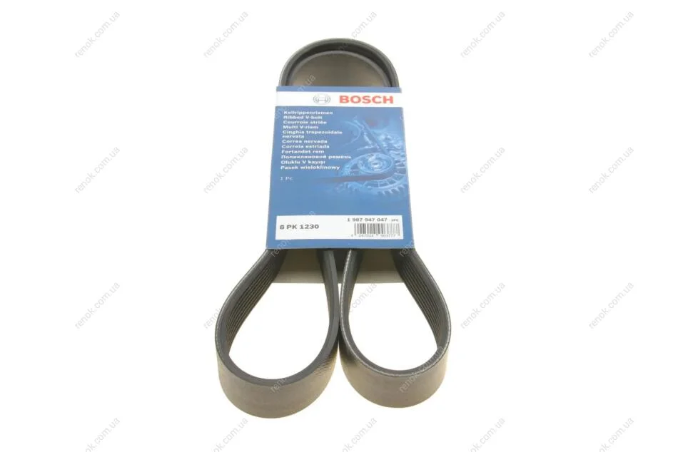 Ремень генератора Mazda 6 2.0 MZR-CD 07-10/MPV 2.0 DI 02-06 (8PK1230) BOSCH 1987947047 (4898546, RF8G15909, RF5G15909)