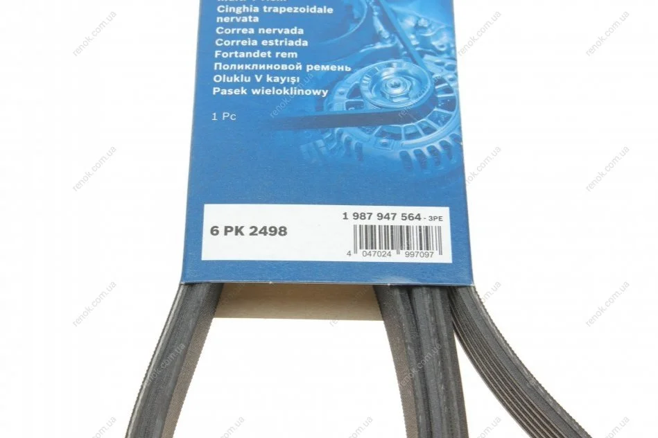 Ремень генератора Audi A4-A6/Q5 2.7/3.0TDI 05-/Hyundai Santa Fe/Kia Sorento 2.0-2.2CRDi 09-(6PK2498) BOSCH 1 987 947 564 (252122G120, 252122F010, 252122F000)