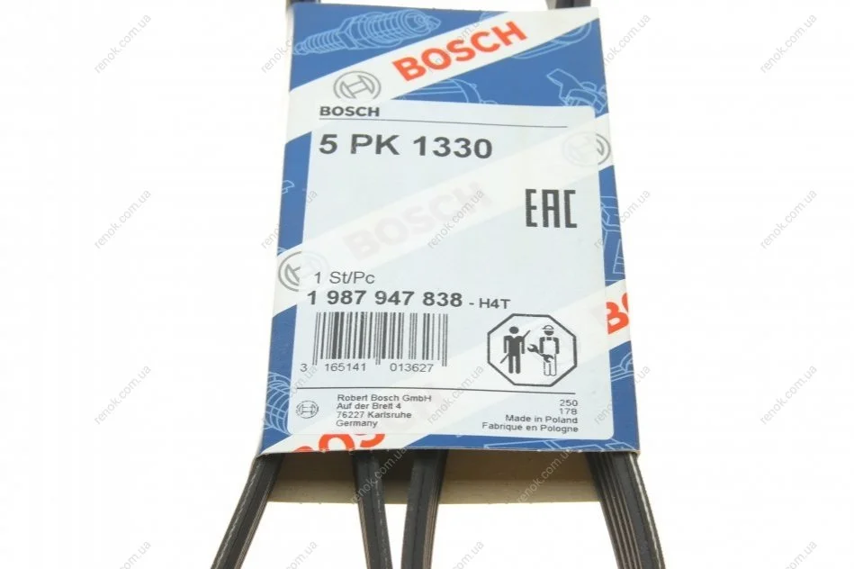 Ремень генератора Mitsubishi Galant 2.0/2.4 GDI 96-04 (5PK1330) BOSCH 1987947838 (7700267464, 7700267456, 7700247464)