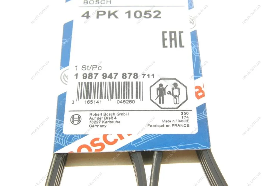 Ремень генератора Toyota Avensis/Camry/Rav 4 1.8/2.0 83-00/Honda Civic 1.4-1.6 88-95 BOSCH 1 987 947 878 (7700855096, 7700854326, 11720F6501)