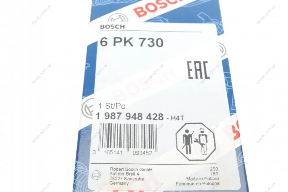 Ремень генератора Citroen Berlingo/Fiat Ducato/Peugeot Boxer/Expert 1.9 D/TD 96-03 (6PK730) BOSCH 1987948428 (5750WN, 5750TP, 5750PV)