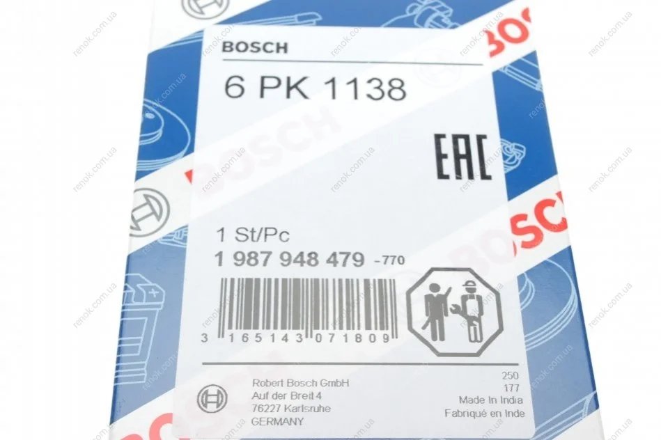 Ремень генератора VW Caddy/T5 1.9TDI (6PK1138) BOSCH 1987948479 (7700865429, 7700853230, 7700729752)