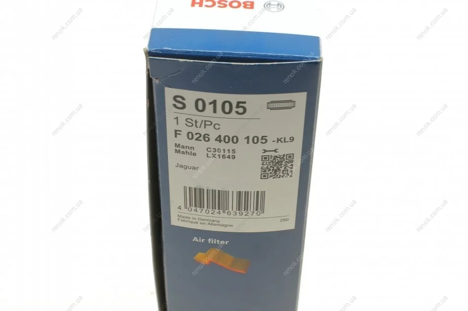 Фильтр воздушный Jaguar S-Type/XF/XJ 2.0-5.0 99- BOSCH F026400105 (2W939601AC, AJ82766, C2Z15037)