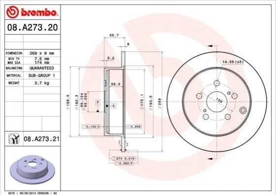 Тормозной диск BREMBO 08.A273.21 (4243120390, 4243120420, 4243132111)
