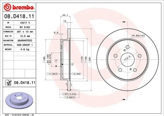 Гальмівний диск BREMBO 08.D418.11 (4243178010)