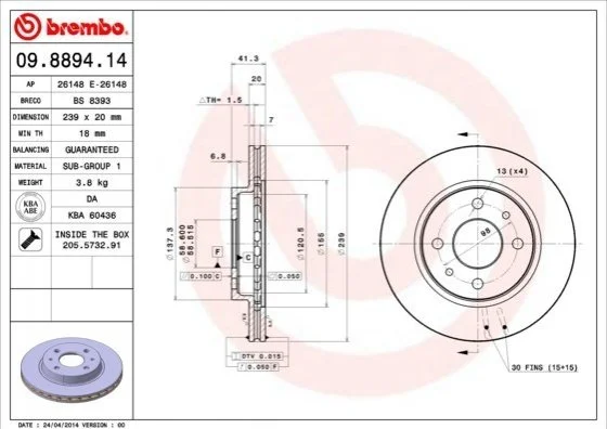 Аналоги "09.8894.14 BREMBO":