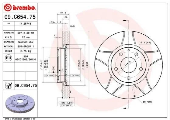 Гальмівний диск BREMBO 09.C654.75 (ghp933251, ghp933251a, ghr133251)