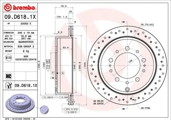 Аналоги "09.D618.1X BREMBO":