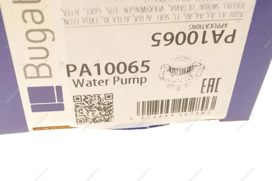 Насос воды Audi A3/A4/A6 2.0TFSI 04-13/Skoda Octavia 2.0RS 05-13/VW Golf 2.0R 07- (23z) (R/B) (8лоп) Bugatti PA10065 (06F121011, 06F121011X, 06A121011R)