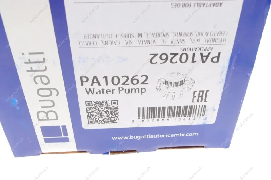 Насос воды Hyundai ix35/Tucson/Santa Fe/Kia Cerato/Sorento/Carens/Mitsubishi 2.0/2.4 10-(R/B)(6 лоп) Bugatti PA10262 (251102G000, 2511025002, 251102G500)
