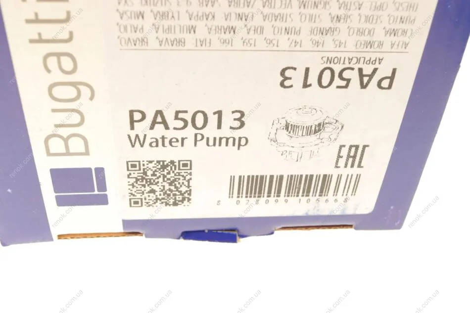 Насос воды Fiat Doblo 1.9D/JTD 01-/Opel Astra H/Vectra C/Zafira B 1.9CDTI 04-10 (B/B) (7 лоп.) Bugatti PA5013 (1740079J50, 46432248, 46515970)