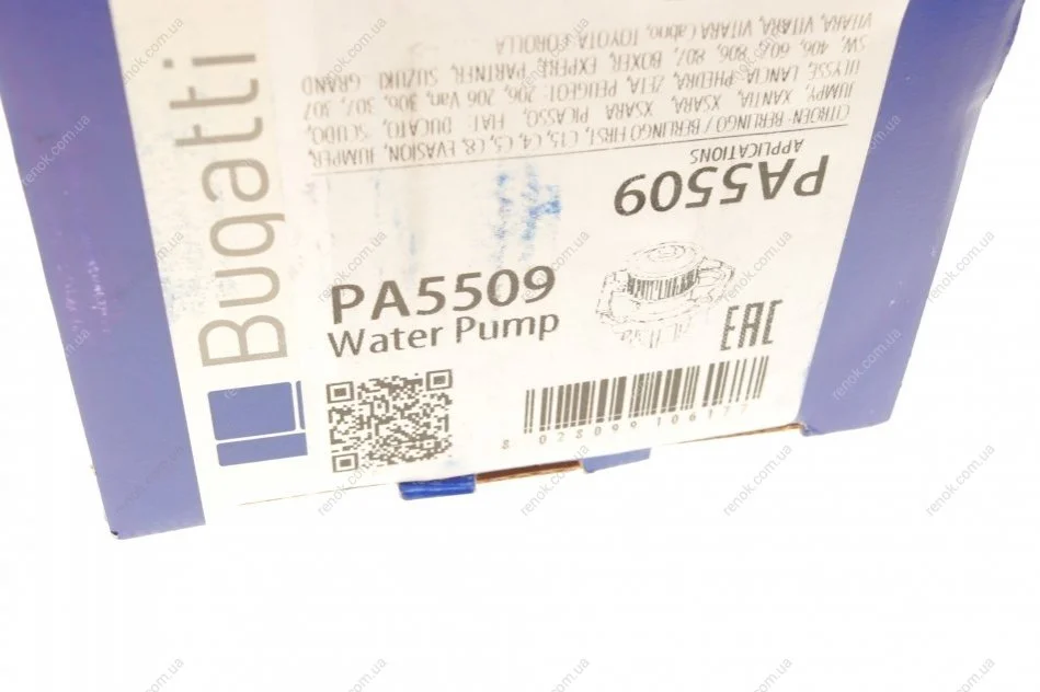 Насос воды Citroen C4/C5/C8/Jumpy/Berlingo 2.0HDi/Fiat Scudo/Ducato 1.9D/2.0JTD 98- (B/B)(7лоп) Bugatti PA5509 (1201C4, 1609402380, 9569147388)