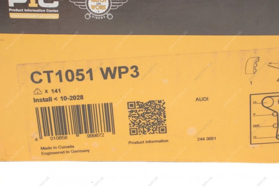 Комплект ГРМ, пас+ролик+помпа CT 1051 WP3 Contitech CT1051WP3
